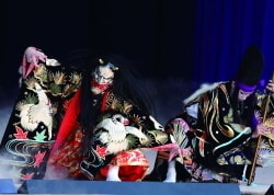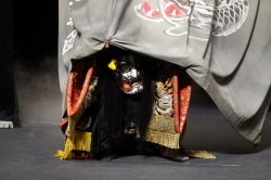 登場する鬼は、非常にあごが長く、凄みのある面出、女の鬼といわれています。