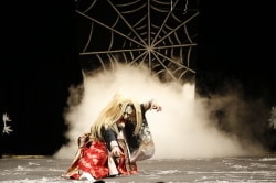 源頼光は四天王を集め、土蜘蛛退治を命じますが、この時髭切丸の太刀を「蜘蛛切丸」と改めて四天王に授けました。葛城山の岩屋についた一行は、土蜘蛛の妖術に悩まされながらも、大激闘の末、蜘蛛切丸をもって土蜘蛛を退治するという物語です。