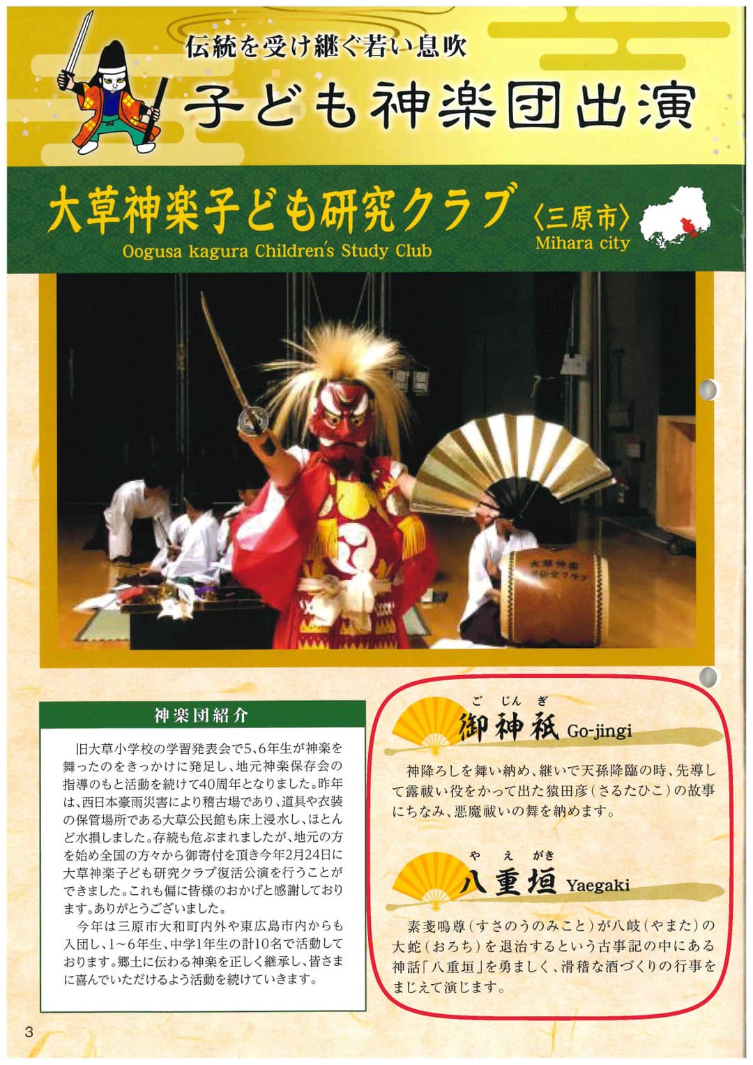 存続も危ぶまれましたが,地元の方を始め全国の方々からご寄付をいただき,昨年2月24日には大草神楽子ども研究クラブ復活公演を行うことができました。